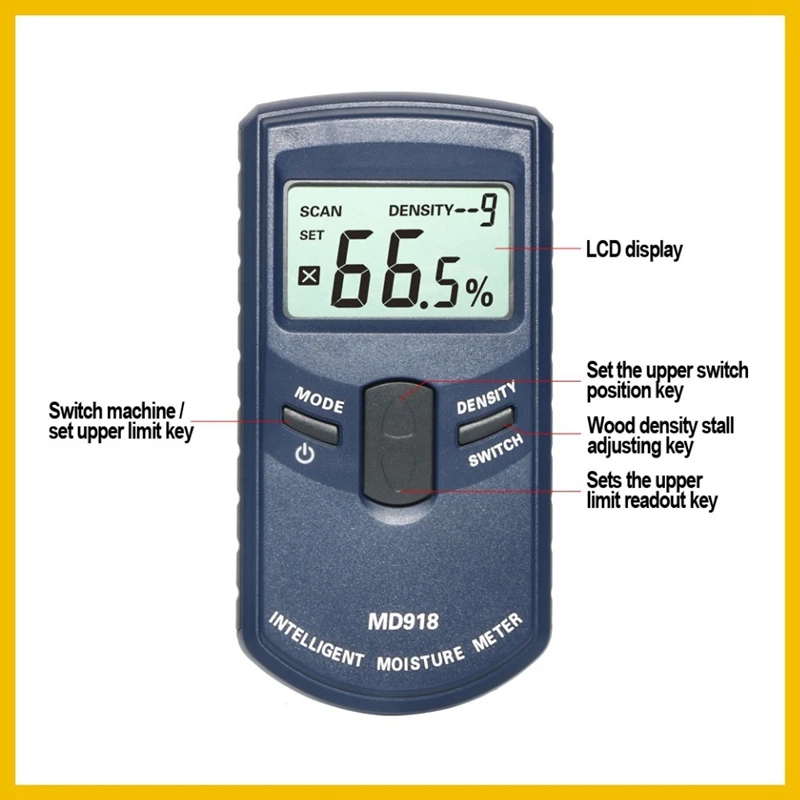 Md918 Digital Inductive Wood Humidity Tester Hygrometer Timber Damp Detector Large LCD Display 4~80