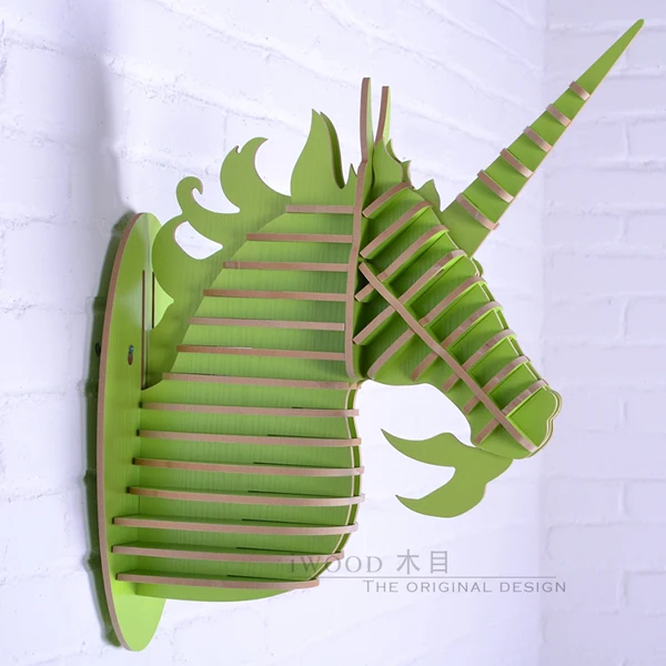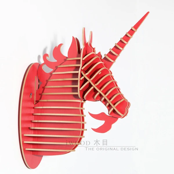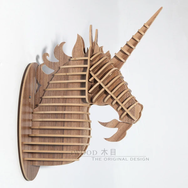 HIGH QUALITY 1PC Northern Europe Style Decoration Wooden Crafts Unicorn Head Wall Hangings For Home and Office W