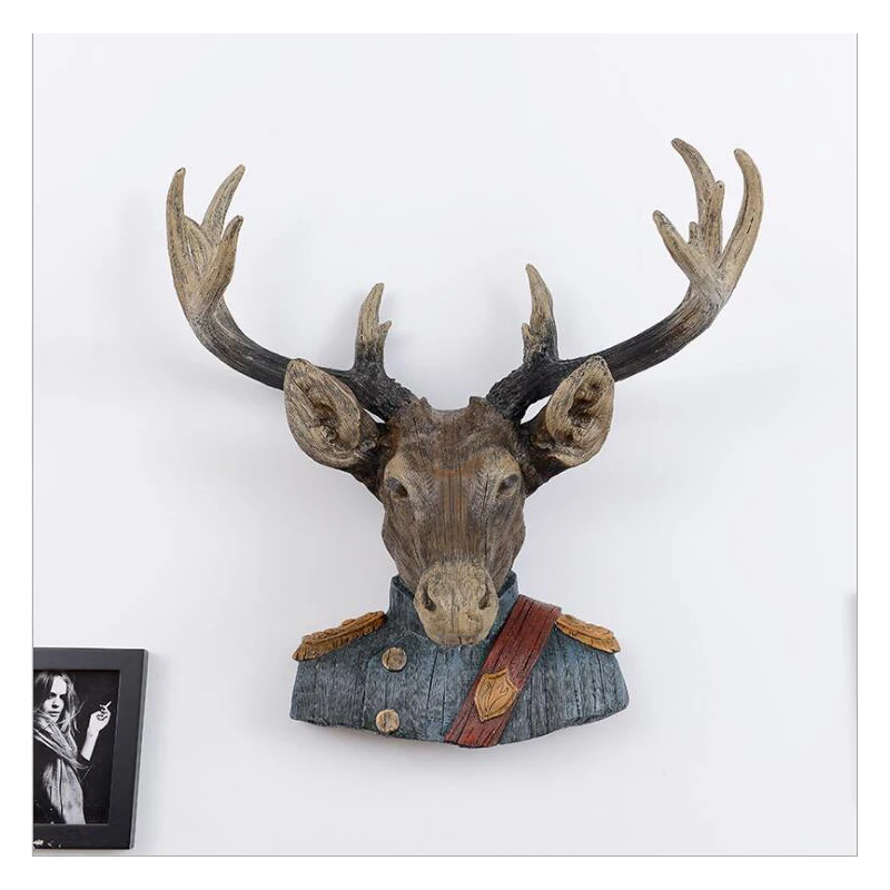 Creative Deer General Wall Hanging Decor Elk Head Sculpture Animal Statue Wall Decoration Ornament