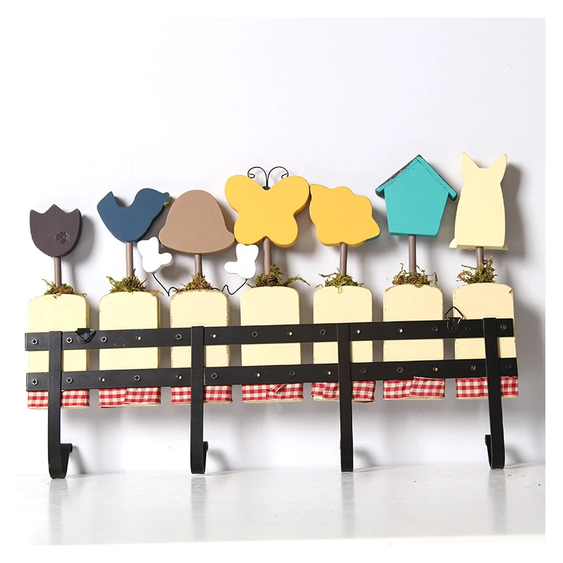 Creative Cartoon Wooden Welcome Hook Ornament Wall Hanging Decor Hook Retro Wall Storage Key Hooks