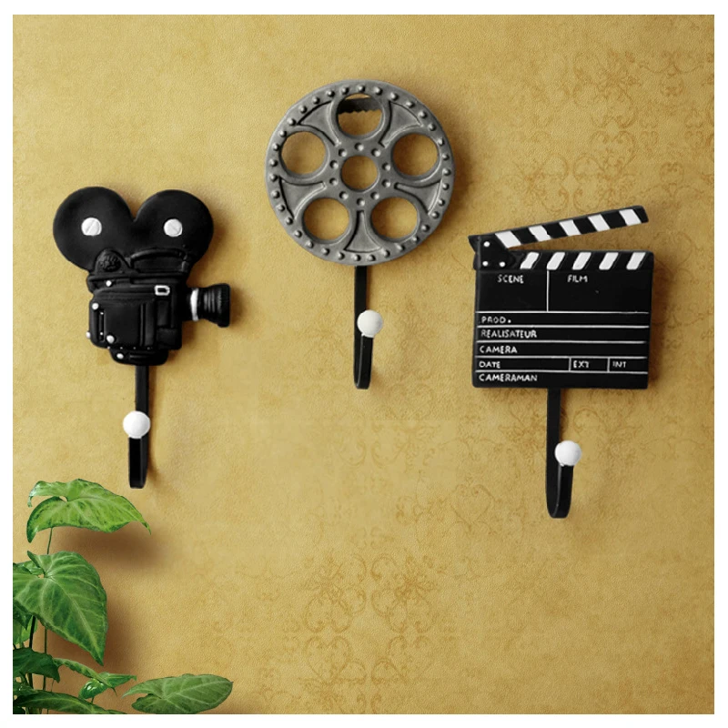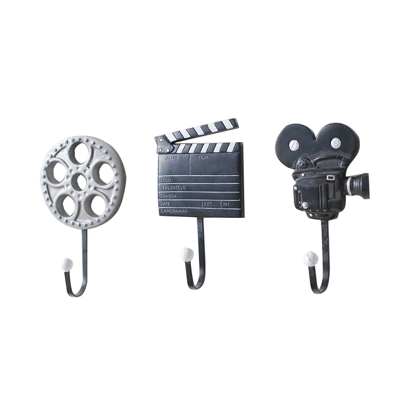 TOP Creative Resin Vintage Movie Equipment Hooks Ornaments Wall Hanging Decor Projector Coat Hanger Sto