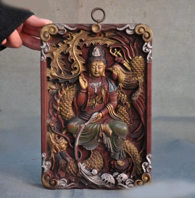 REVIEW TOP SELLER wedding decoration Tibet Buddhism Old Wood Painte Guanyin KuanYin Buddha Statue Tangka Wall Hanging
