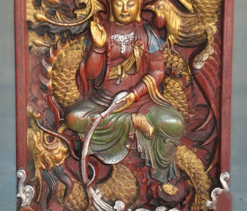 wedding decoration Tibet Buddhism Old Wood Painte Guanyin KuanYin Buddha Statue Tangka Wall Hanging